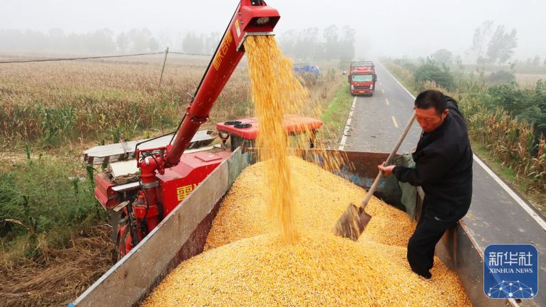 10月11日,江苏省连云港市海州区岗埠农场工作人员在装运玉米。