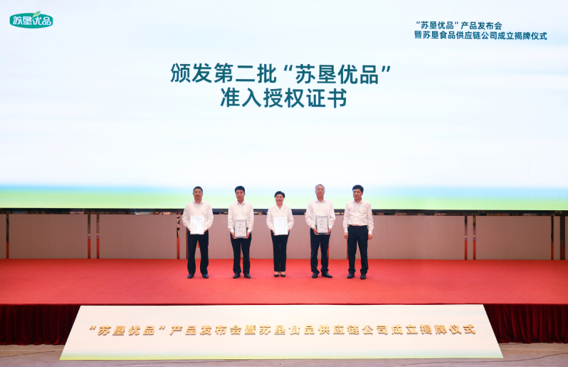 活动现场,吴本辉与中山大厦负责人共同为苏垦食品供应链公司成立揭牌。朱浩为第二批“苏垦优品”生产单位颁发授权证书。王立新在致辞中系统阐述了“苏垦优品”产品的价值定位、市场定位和质量保障体系,并介绍了苏垦食品供应链公司的组建背景与发展愿景。