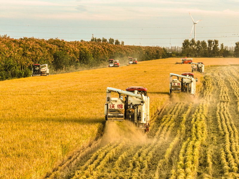 近日,随着连日阴雨天气的结束,苏垦农发淮海分公司各生产区迅速转入抢收状态,一台台满载着希望的收割机轰鸣着驶入稻田,将沉甸甸的稻穗尽数“揽入怀中”。